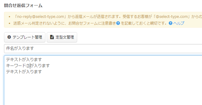 設定されていたキーワードでお問合せの返信フォームから使用できるようになります。