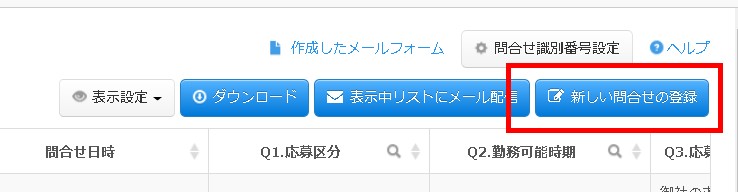 「新しい問合せの登録」ボタンをクリックしてご登録ください。