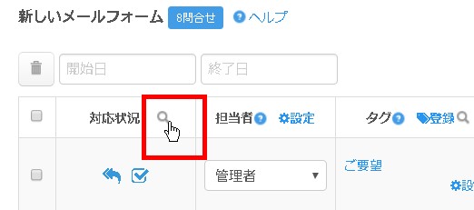「対応状況」ヘッダーよりサーチアイコンをクリックします。