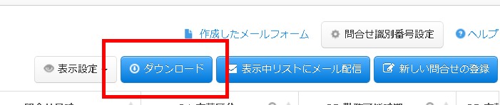「ダウンロード」ボタンをクリックすると表示されているお問合せリストがCSVファイルとしてダウンロードされます。