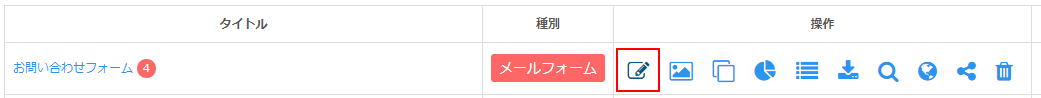 表示されたフォーム一覧画面より、今回設定を行いたい目的のフォームの「編集」アイコンをクリックしましょう。