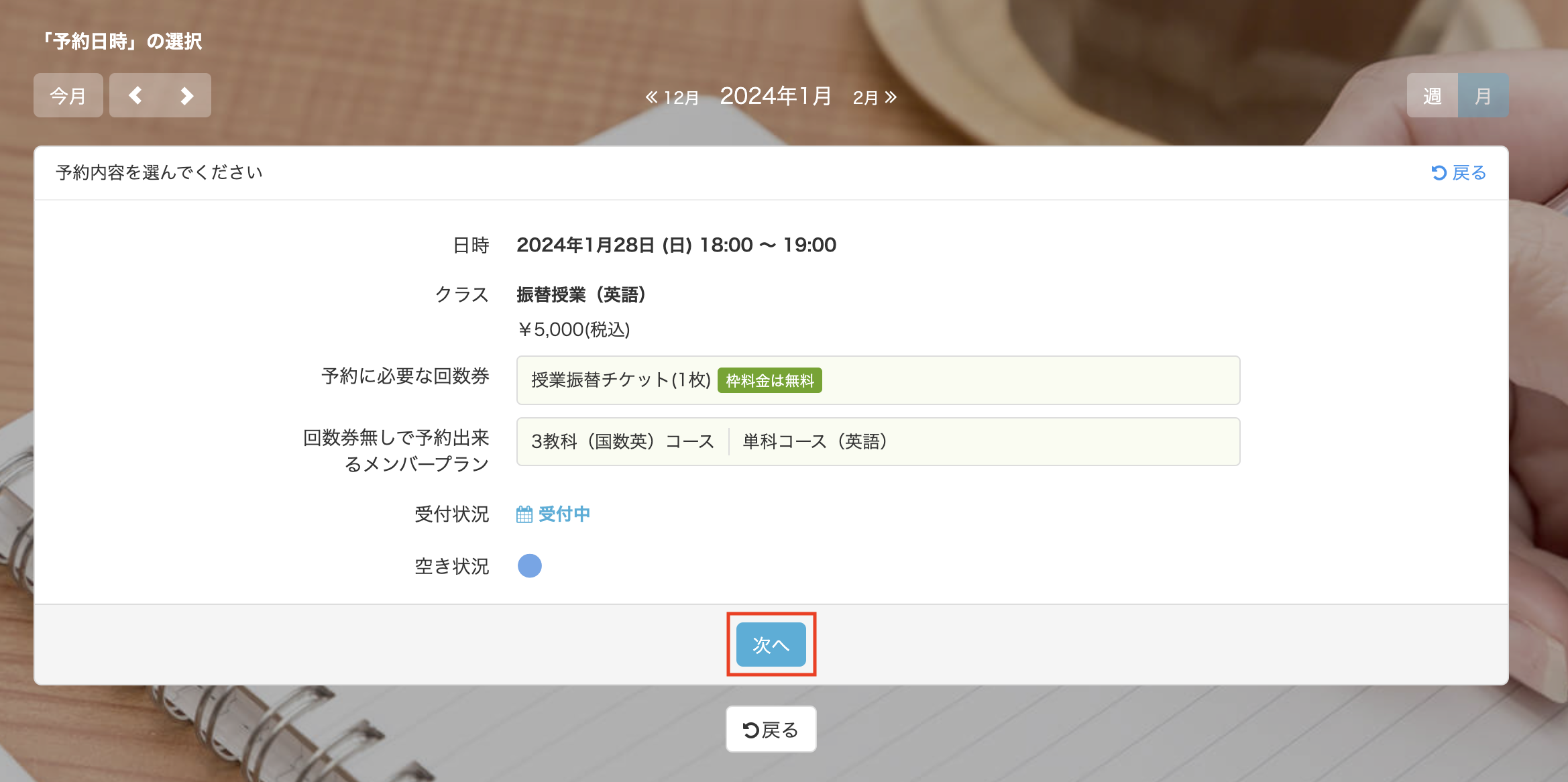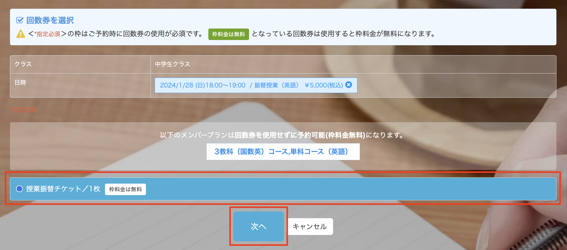 このようにSelectTypeの予約システムでは、月額制のプランをご利用中の場合に、回数券を利用せずに予約を受け付けることができるようになります。