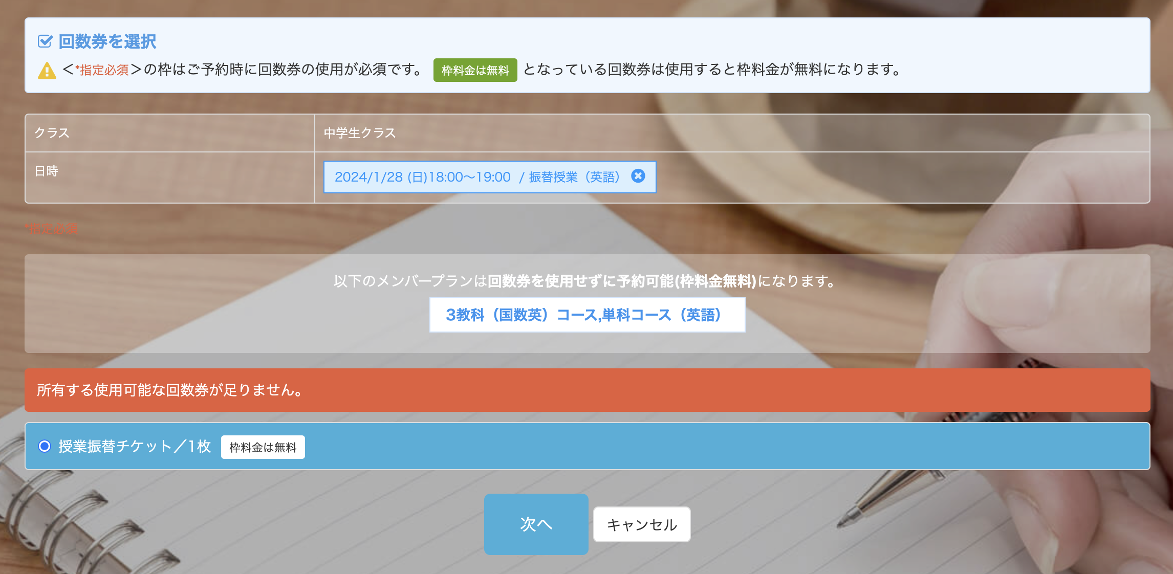 メンバープランや回数券を持っていない場合は、予約ができません。