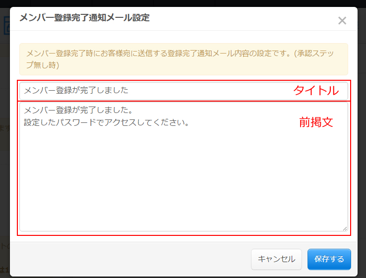 このブログエントリーでは、メンバー登録時の登録完了メールの設定方法をご案内します。