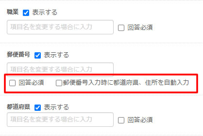 「郵便番号」の設定を「表示する」に設定してオプションを表示します。