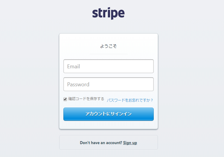既にStripeアカウントをお持ちの方は、お持ちのアカウントでStripeにログインをします。