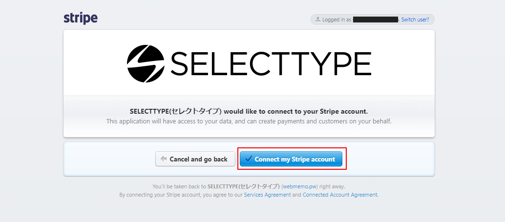 「Connect my Stripe account」をクリックします。