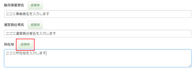 「仮保存」ボタンをクリックしますと、これまで入力していたデータが仮保存されます。