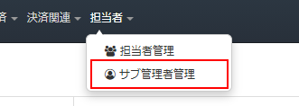 ログイン後、ページ上部ヘッダーより「担当者」→「サブ管理者管理」をクリックします。