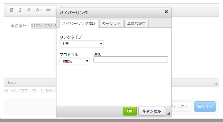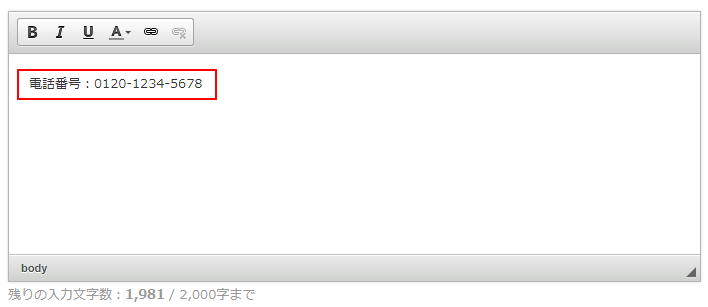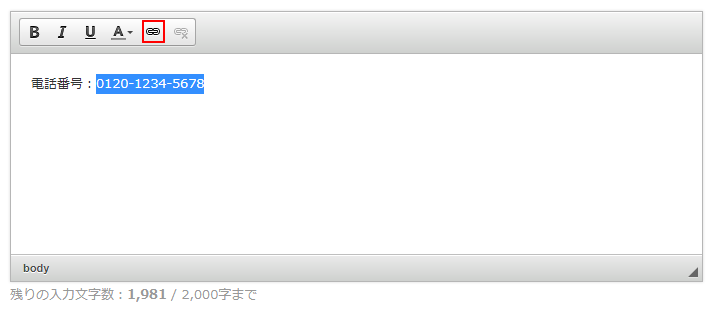 文章を登録する際に使用されるテキストエディタから電話番号の発信用リンクを設置することができます。