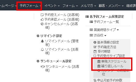 目的の予約フォームの単発スケジュール/繰り返しルール設定エリアに移動します。