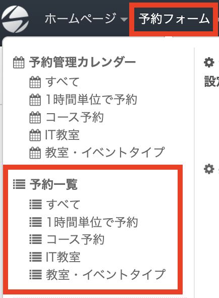 まずはヘッダーの「予約フォーム」をクリックし、取り消したいクーポンコードが使用された予約フォームを選択します。