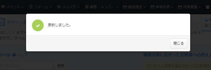 事前決済機能を有効にしますと、「決済関連ボタンラベル」の設定エリアが表示されます。
