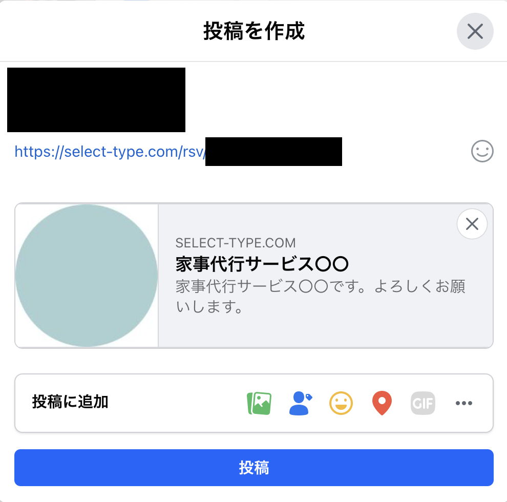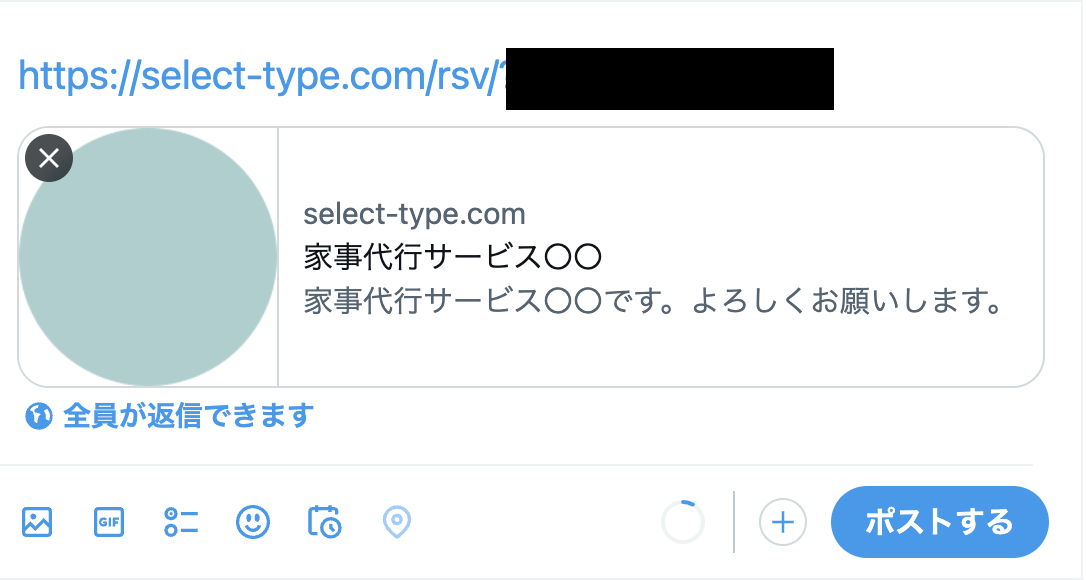 SelectTypeでは、予約システムやイベント申込URLを、X(旧Twitter)やFacebook、LINEなどのSNSでシェアして集客を行うことが可能です。SNSでシェアする際、タイトルや説明文、画像を設定することで、より分かりやすく貴方のお店を紹介することができます。