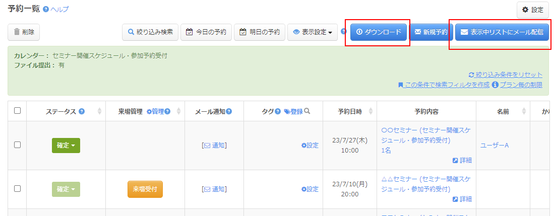 ・ファイル提出された予約者だけのリストをCSVデータでダウンロードする