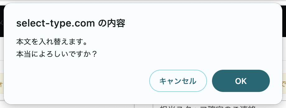 メッセージ本文の変更確認のメッセージが表示されますので、「OK」をクリックします。