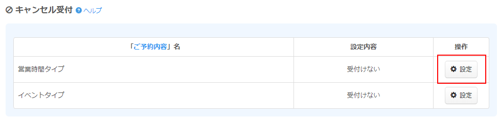 キャンセル受付設定エリアが表示されます。