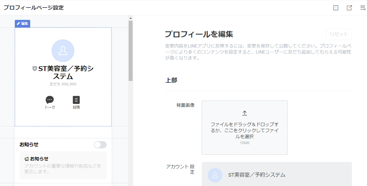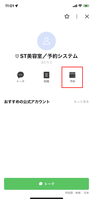 これで公式LINEのプロフィール画面に予約リンクが設置されます。