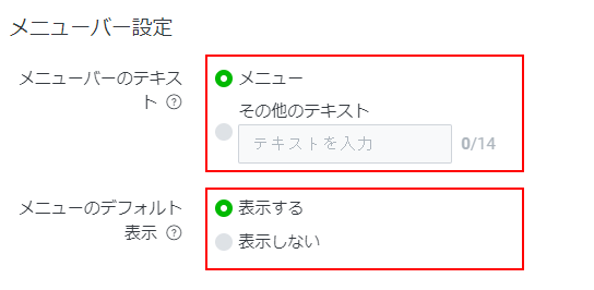メニューバー設定にてメニューのデフォルト表示を設定します。