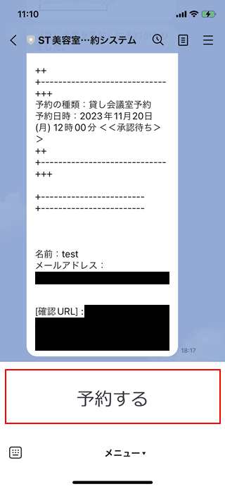 お客様は予約情報をLINEに通知できますので、予約の控えを確認する流れでLINEアプリから予約フォームへアクセスできるとスムーズに予約を入れて頂くことが出来てお薦めです。