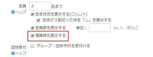 イベント予約を受け付けていたことを示したい場合には、満席時の表示設定を有効にしておきましょう。