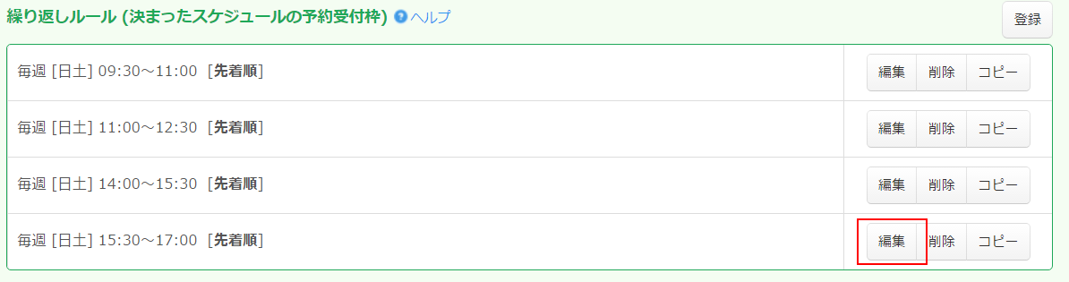 目的の繰り返しスケジュールの「編集」をクリックします。