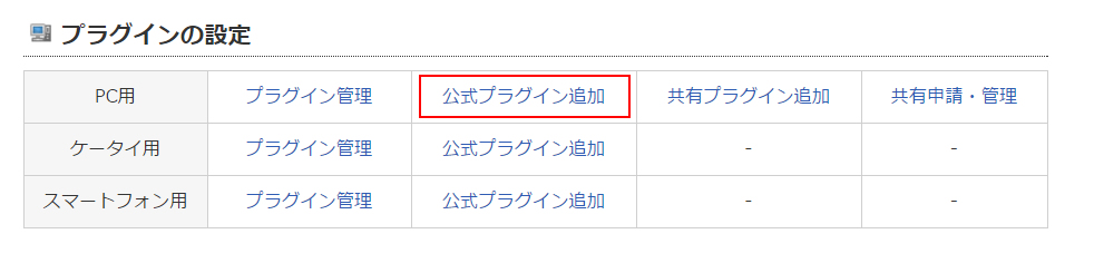 「公式用プラグイン追加」をクリックします。