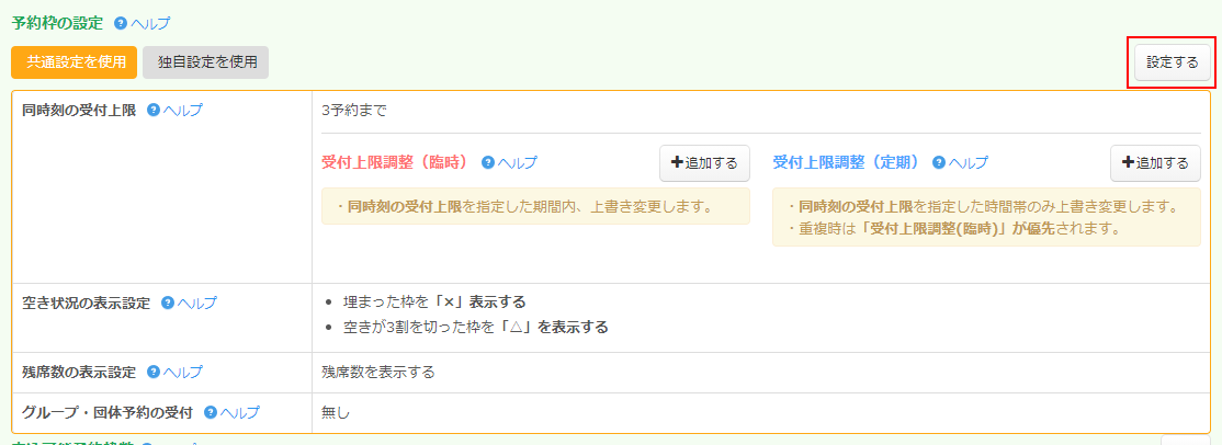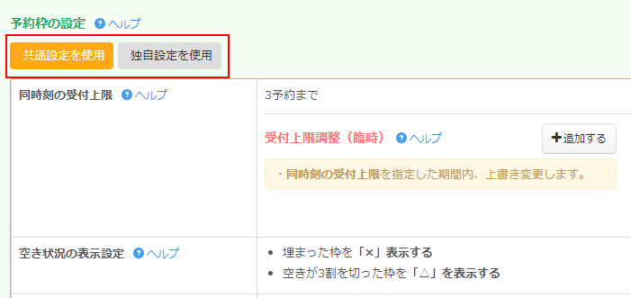 予約枠の設定は「共通設定を使用する」か「独自設定を使用する」かを選ぶことが出来ます。