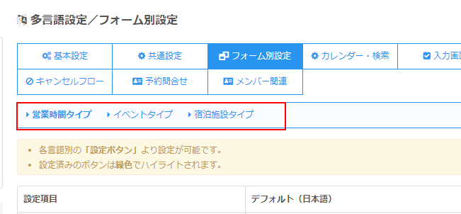 既に予約フォームを運用中の場合には、多言語機能を無効にした状態で設定を進めて、