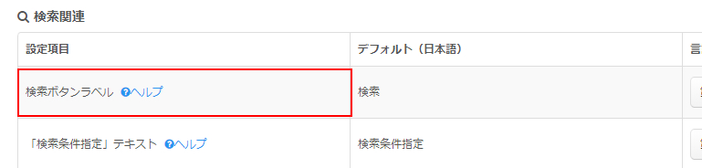 デフォルト(日本語)欄では検索ボタンラベルの日本語で登録されている内容が確認できます。