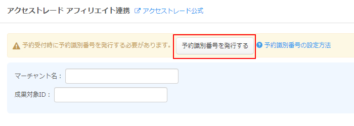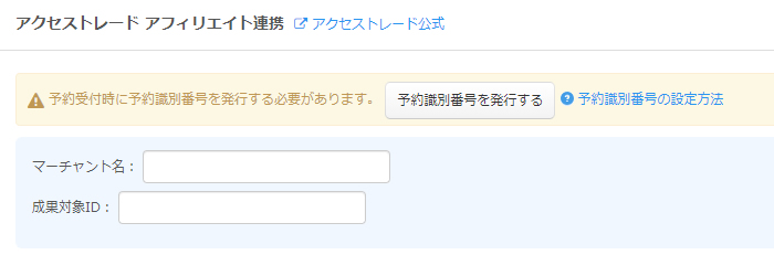 事前にアクセストレードへ広告のお申込みを行ってから必要な情報(マーチャント名・成果対象ID)を入手し、その情報をもとに予約フォームと連携します。