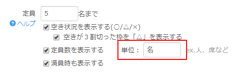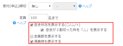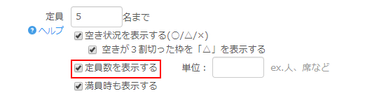 その空き状況を表示する際に残りの定員数も設定により表示することができます。