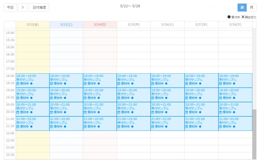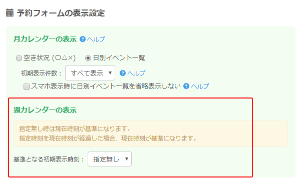受付する時間帯が夕方や夜の場合、週カレンダーで最初に表示される位置を設定しておくと予約フォームを使いやすくなります。
