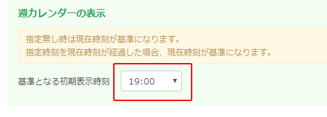 「週カレンダーの表示」にて基準となる初期表示時刻を指定します。
