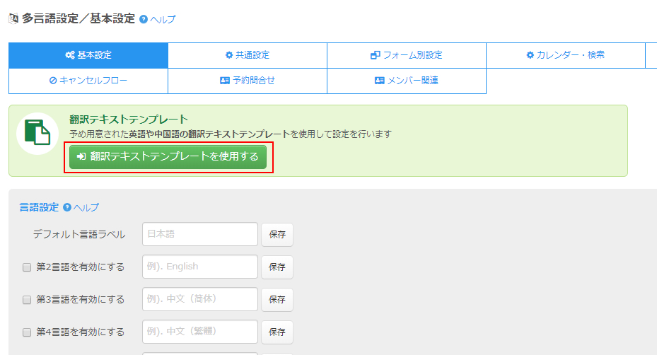 このようにSELECTTYPEの予約システムでは、多言語対応するため翻訳テンプレートからセットアップする機能がございます。