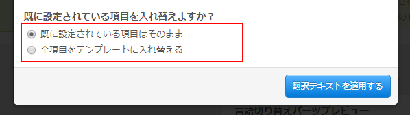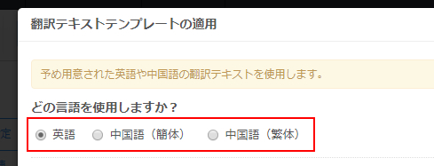 翻訳テキストテンプレートの適用設定画面が表示されます。