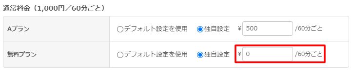 プラン毎の設定は「独自設定」を選んで、料金を入力します。