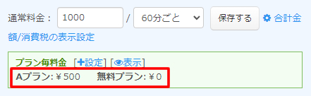 登録した内容が緑枠のプラン毎料金エリアに表示されます。