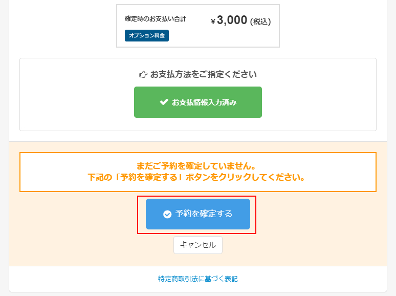 カード情報を入力後、「予約を確定する」ボタンをクリックしますと、予約が完了します。