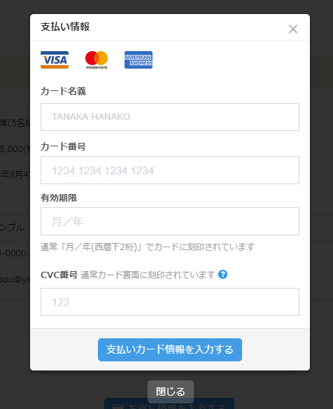 クリックすると支払い情報入力用画面が表示されます。