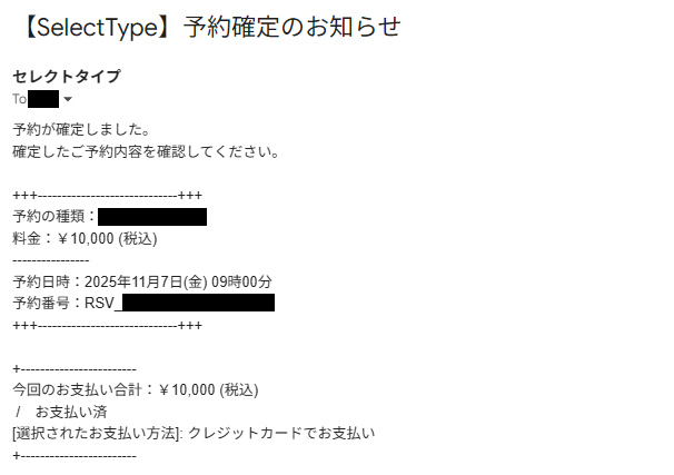 予約が完了すると控えメールが送付されます。
