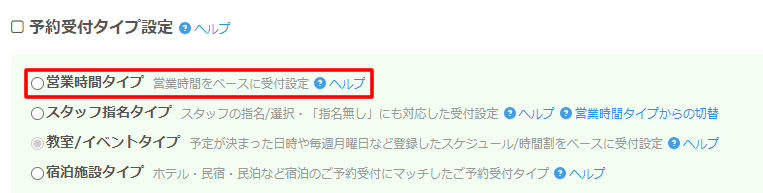 受付タイプが営業時間タイプではない場合には「営業時間タイプ」に切り替えます。