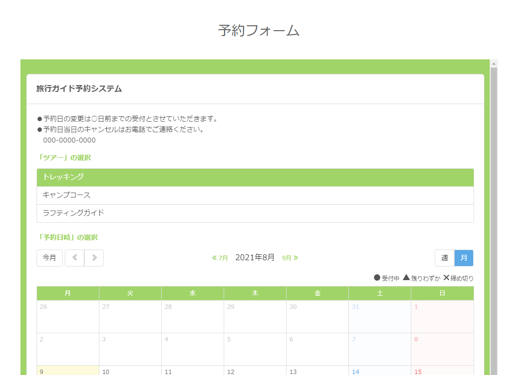 このようにSELECTTYPEの予約システムでは作成したフォームを、Wixのような外部のホームページ作成サービスなどで作成したページに埋め込むこともできます。