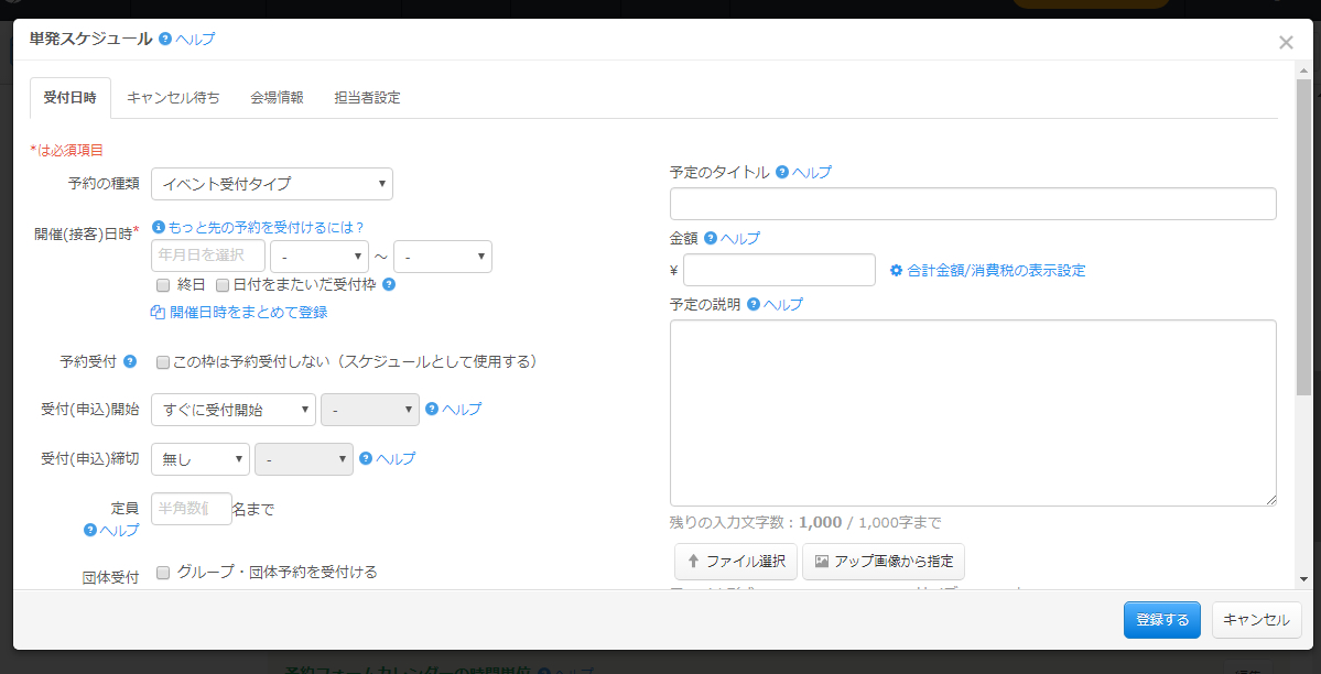 「登録」ボタンから新たに受付日時が設定出来ます。